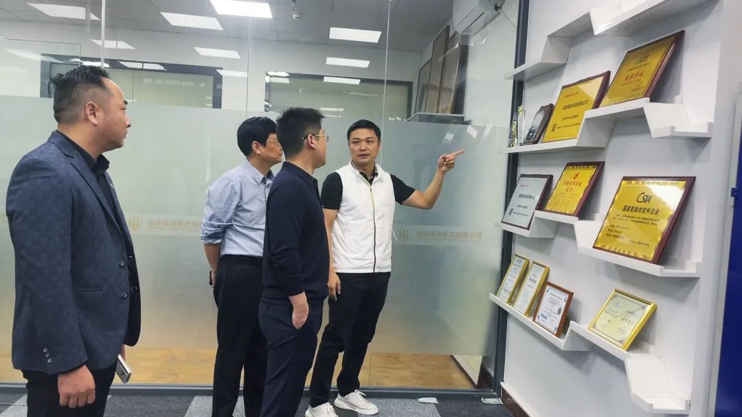 在参加2023盐城(深圳)珠三角科技招商推介活动前,盐城市盐都区科学技术局局长石弘如、副局长杭加林一行莅临海冰科技指导工作,共同展开创新能力的产业项目落地交流。座谈中,双方代表深入交流,就深化在盐城的合作,共同推进盐城市的绿色低碳发展示范区建设达成共识。